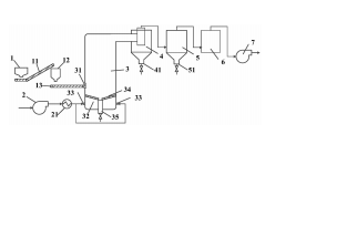 根據(jù)權利要求 所述的強制通風-螺旋攪拌土壤熱解吸修復有機污染土壤的系統(tǒng),其特 征在于 :所述尾氣處理系統(tǒng)由旋風除塵器、除濕器和吸附塔組成,旋風除塵器 、除濕器和吸附塔依次連接在螺旋攪拌熱解吸系統(tǒng)的螺旋攪拌熱解吸裝置 和引風機之間。