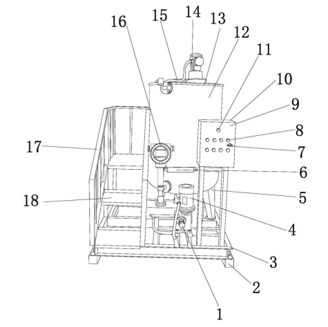 高土壤修復(fù)、可測(cè)溫用加注 設(shè)備,包底座、行走輪、殼體和防滑把手,殼體的內(nèi)部安裝有蓄電池組,蓄電池組的 一側(cè)安裝有空氣壓力泵,空氣壓力泵的一側(cè)安裝有儲(chǔ)藥箱,儲(chǔ)藥箱的一側(cè)安裝有 電機(jī),安裝支架的底端通過(guò)轉(zhuǎn)軸安裝有翻土滾筒,送藥管道的底端安裝有灑布桿, 灑布桿上方的送藥管道上安裝有開(kāi)關(guān)閥門,灑布桿一側(cè)的底座底部安裝有行走 輪,行走輪一側(cè)的底座底部固定有安裝板,且安裝板的底部通過(guò)鉸接軸安裝有撫平板。 該發(fā)明加注裝置結(jié)構(gòu)創(chuàng)新,通過(guò)設(shè)置翻土滾筒和帶有刻度表觀察窗的儲(chǔ)藥箱,使加注藥劑 更加的準(zhǔn)確、更合理,既能夠?qū)崿F(xiàn)高效的土壤修復(fù)工作,又能夠避免藥劑資源的大量浪費(fèi),但現(xiàn) 有技術(shù)無(wú)法檢測(cè)溶液箱內(nèi)部溫度,導(dǎo)致攪拌機(jī)機(jī)器因溫度過(guò)高而停止運(yùn)行。