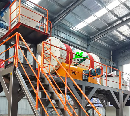 圓筒式擦洗機清洗物料過程中,物料與物料之間相互磨擦具有自磨效果,附加高彈性襯板增加物料表面擦洗次數(shù)使泥團砂石分離非 常徹底,效果顯著。相較于其他傳統(tǒng)設(shè)備圓筒式擦洗機具備以下優(yōu)勢: