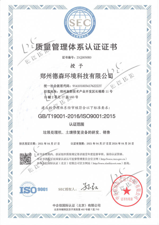 德森環(huán)境通過ISO9001三項管理體系認證,榮獲高新技術(shù)企業(yè)、鄭州市專精特新中小企業(yè)授牌,各項工作穩(wěn)步開展,未來可期……