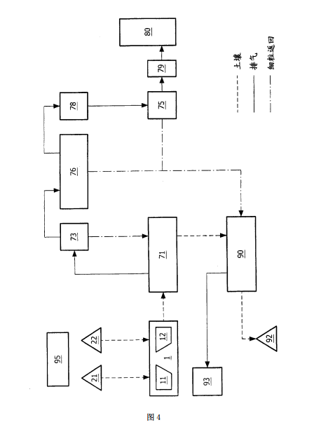 在本發(fā)明一個優(yōu)選實施方式中,上述工序用作處理被煤焦油、聚芳香烴、氰化物、 礦物油、氯化溶劑、殺蟲劑、硫磺和 / 或水銀污染的土壤的手段。如果需要,例如當進料物質(zhì) 受到殺蟲劑或二惡英污染時,可以將氣體處理系統(tǒng)升級為帶有在集塵室之前用以注射活性 碳的系統(tǒng)或者活性碳過濾器可安裝于濕洗滌器之后。